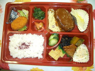 本日のお弁当♪ メインはハンバーグですぅ〜♪ |
