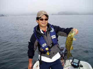 当日は、ボーターの編集長(18年ぶり?)と相談の結果、大崎で5本揃えてから ノジラ 狙いのプランに決定。この段階では相変わらずの「天国」だったら、バックシートで「オトナシク釣りしていよう・・」と考えていたが・・ 前日からの濃霧&前週よりクリアな水質に、朝から 地獄モード の予感??
