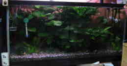 | 我が家の水槽です 知人の家にあるのを見ていいなぁと思い始めましたが、もう10年?位になります。 始めの頃はいろいろな魚を飼いました。 グッピー→プラティー→エンゼルフィッシュ(ふ化に成功 3000匹ほど)→ディスカス(ふ化に成功 3000匹ほど) おもなものはこんなものですがこの他にもいろいろと飼いました。 今では水草水槽となり、ほとんどほったらかしです。 (^^;) 水草は アヌビアス ナナ バルテリー ミクロソリュウム が主体でビーシュリンプ コリドラス(赤、白)がいます。コリドラスはかってに繁殖して少しずつ増えてます。 |