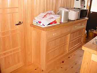 突き当たりが台所。流し台も木。木戸が懐かしい。使い古されていくほどに味わいが増してますます楽しみ。