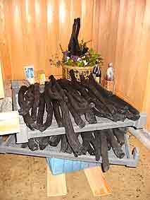玄関を入ったところは土間になっていて、土にも炭が混ざっていました。大きな備長炭が並べてありました。