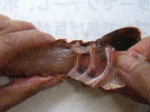手順 4 内側の薄皮の方から親指又はスプーンなどで 皮をしごくように身を外していきます。 鮮度のよいものほど外しにくいので 焦らずきれいに外します。 |