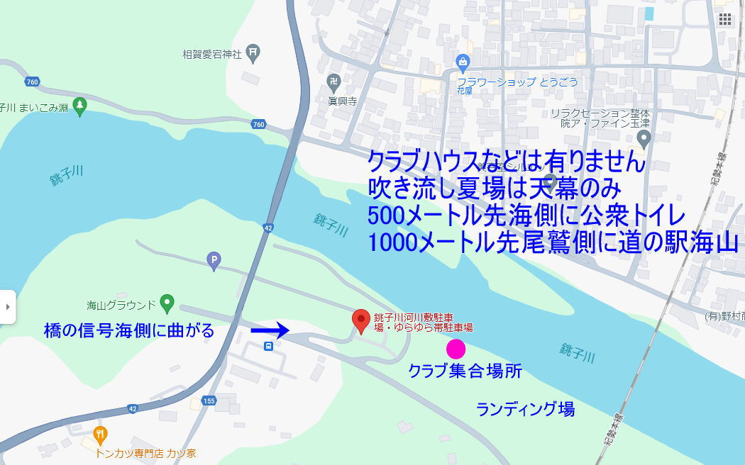 銚子川河川敷駐車場・ゆらゆら帯駐車場を目指してください
