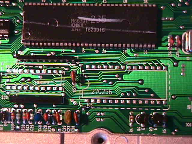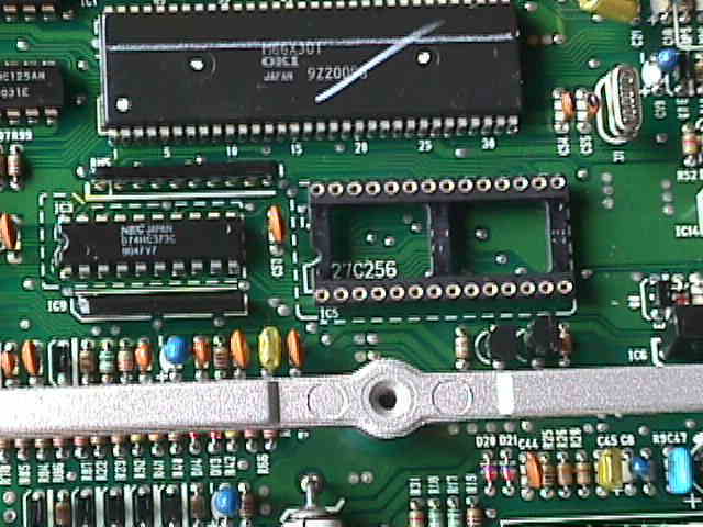 ECUです、ICとROMのソケットを半田付けします、それとJ1って所を短絡します