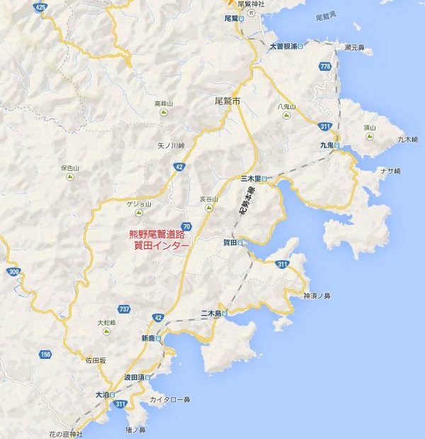 車をご利用の場合 尾鷲熊野道路の賀田ICでおりて 出口を賀田方面へ右折し 5分ほど道なりに走る。