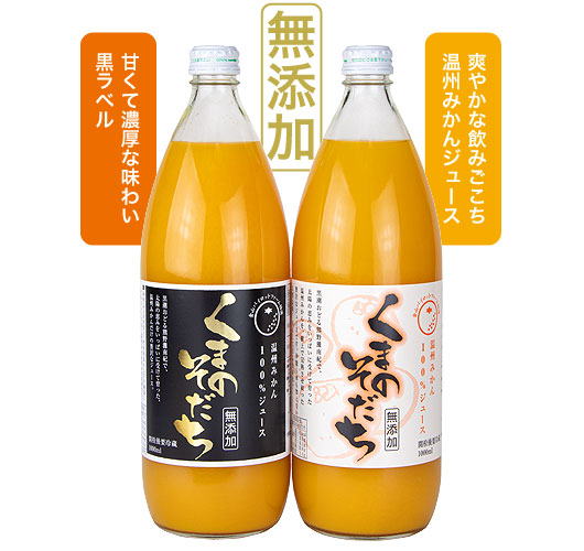 白ラベルは、爽やかな飲みごこちの温州みかん100%ジュース。 黒ラベルは、甘くて濃厚な味わいの温州みかん100%ジュースです。
