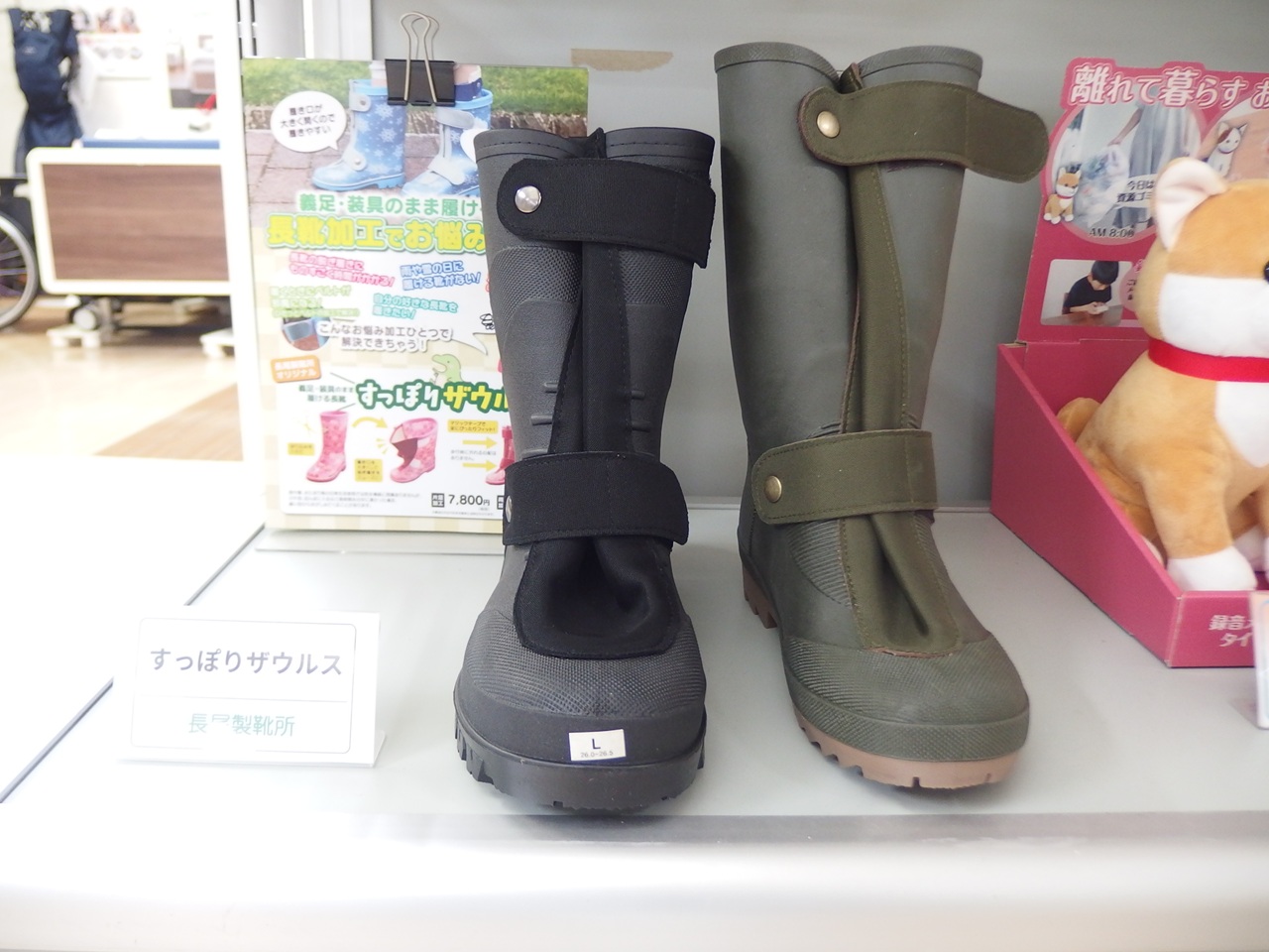 ★義足や装具をつけたまま履ける長靴です。気に入った長靴を脱ぎ履きしやすく加工してくれます。