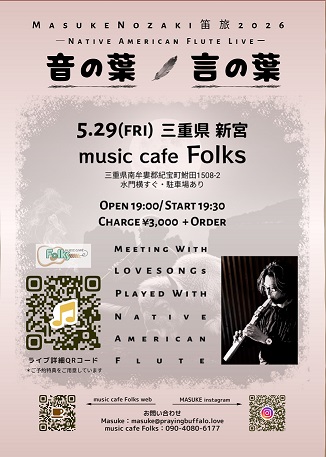 野崎マスケNative American Fluteライブ〜笛旅2026・音の葉 言の葉〜